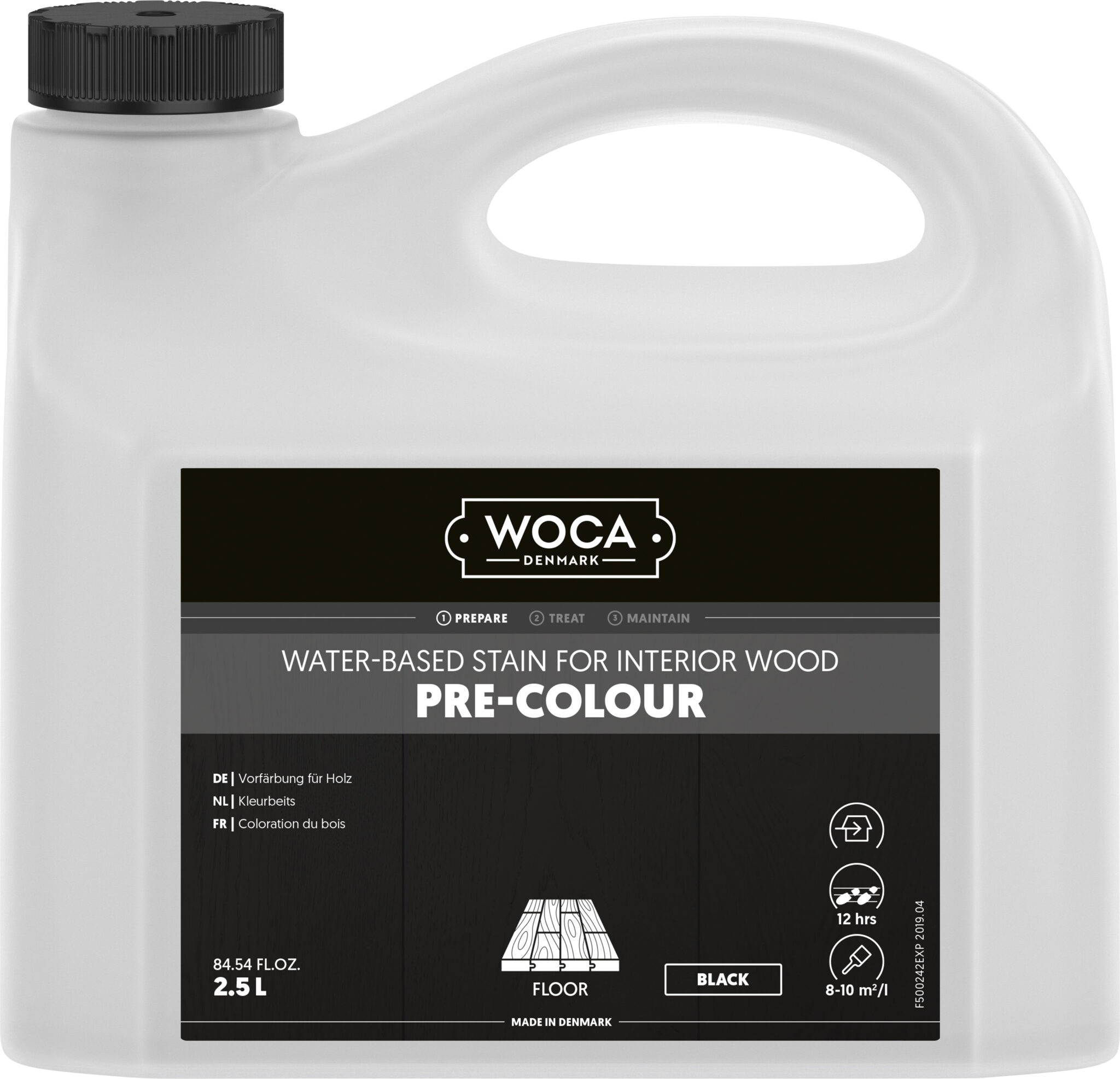 Pre-Colour is een beits op waterbasis om onbehandeld hout voor te kleuren. Deze beits is verkrijgbaar in wit, grijs en zwart en geschikt voor vloeren, trappen, meubels, panelen, etc…